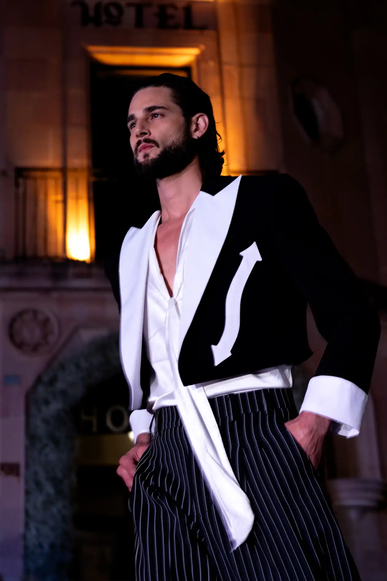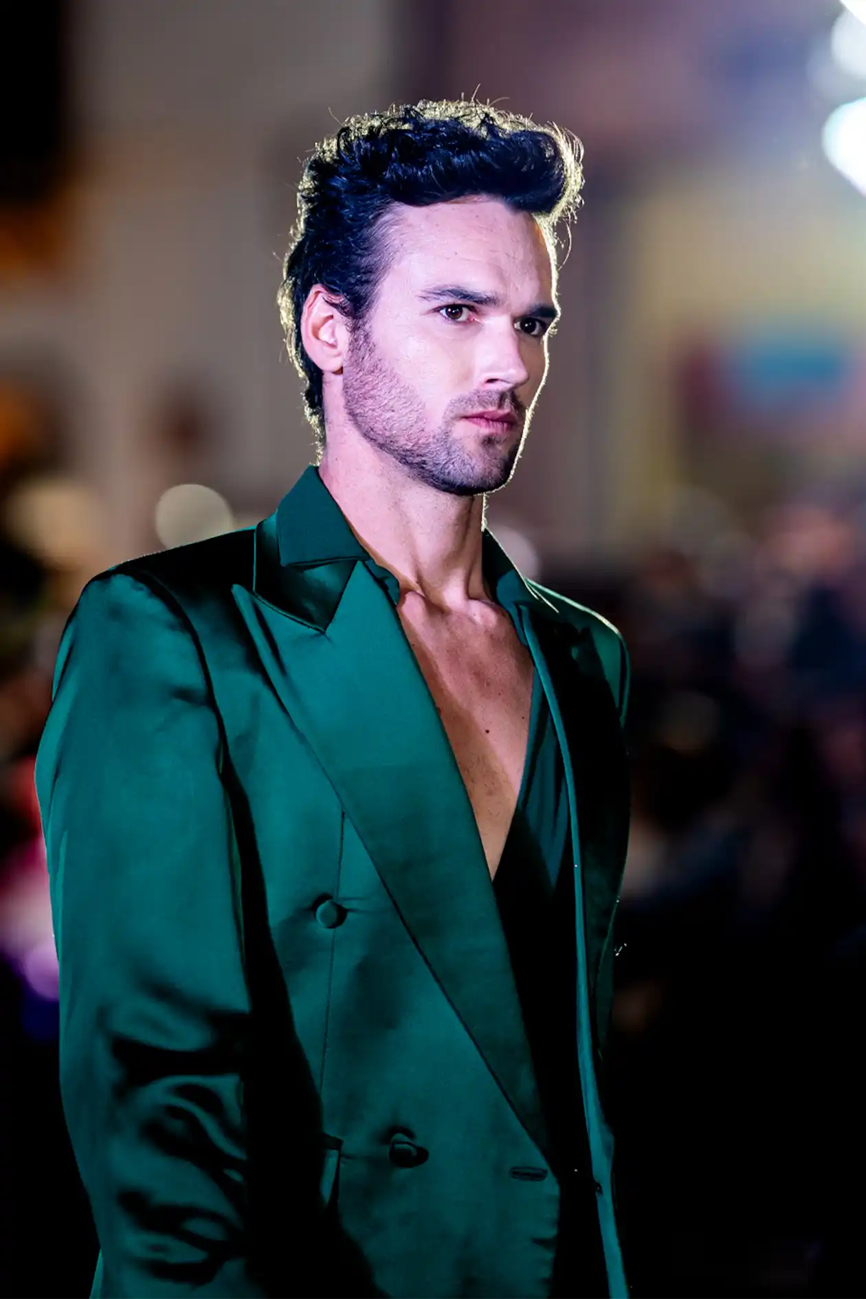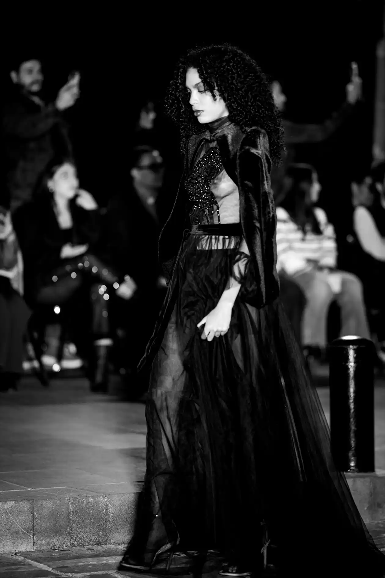 Como fotógrafo, mi enfoque fue doble: detalle y conjunto. Primeros planos de costuras, gestos y texturas; tomas amplias que incluyeran la arquitectura que lo sostiene todo. Así, cada imagen funciona como documento y obra. Este evento no fue solo desfile: fue ciudad-actuando.